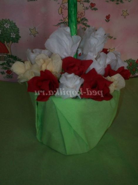 Заключний етап можна прикрасити горщик. Я прикрасила залишилася зеленим папером і трояндами (можна прикрасити намистинами, камінчиками, пофарбувати фарбою).