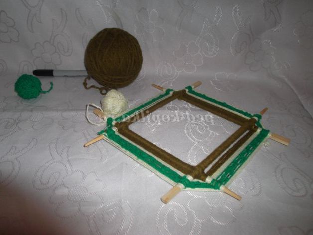 5. На цьому етапі потрібно обмотати останню паличку, а це вже не дуже зручно тому клубочок має проходити вже через замкнену рамочку. Ми з дітьми іноді обрізаємо нитку на 40-50 см і домативаем вже цим кінчиком.