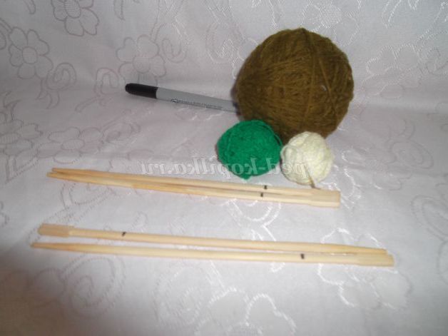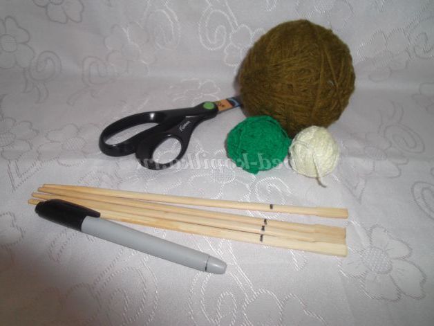 Палички для суші - 4 шт., нитки (в'язальні, ірис), ножиці, олівець чи фломастер