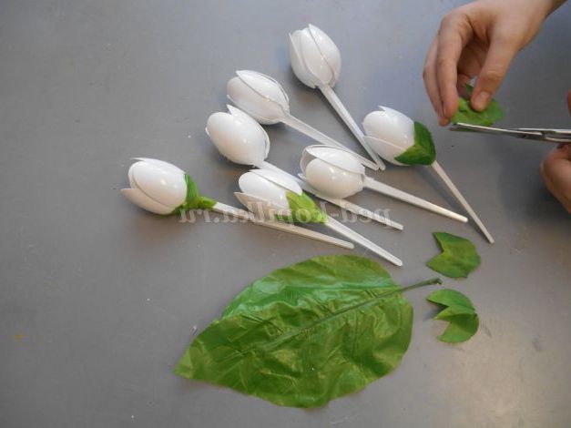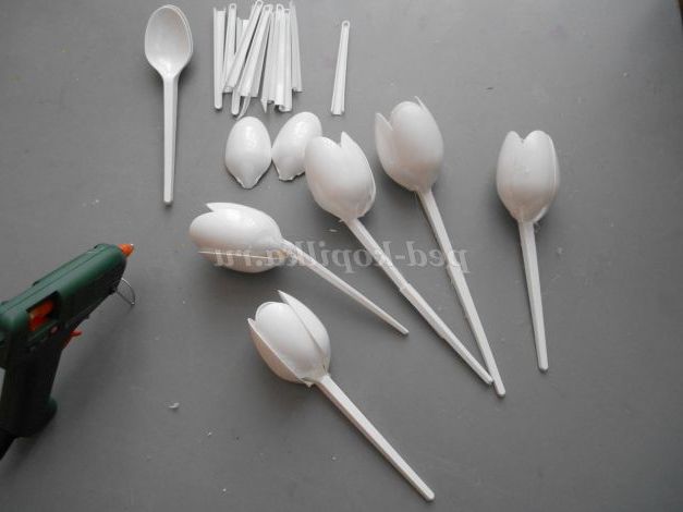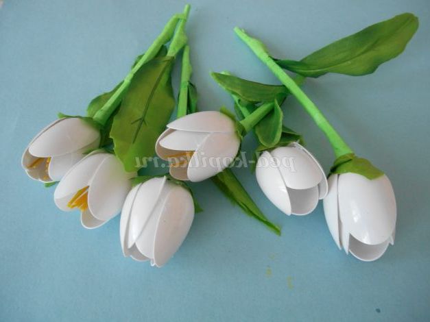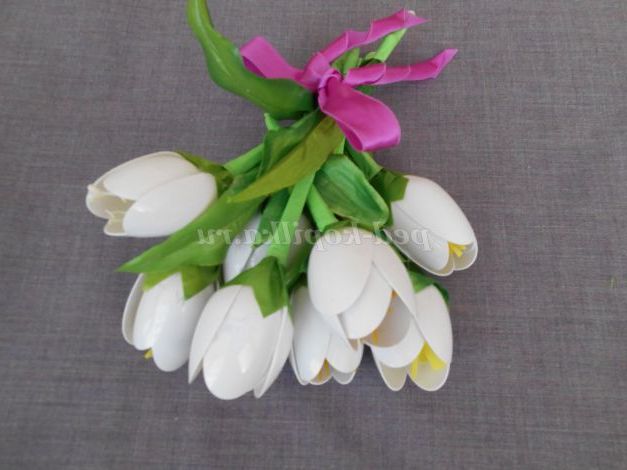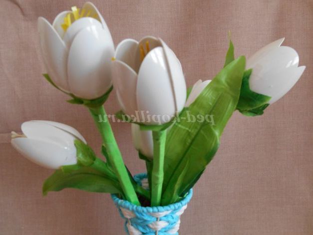Білі тюльпани дарує нам весна. Виготовлення квітів з пластикових ложок своїми руками. Майстер - клас з покроковими фото