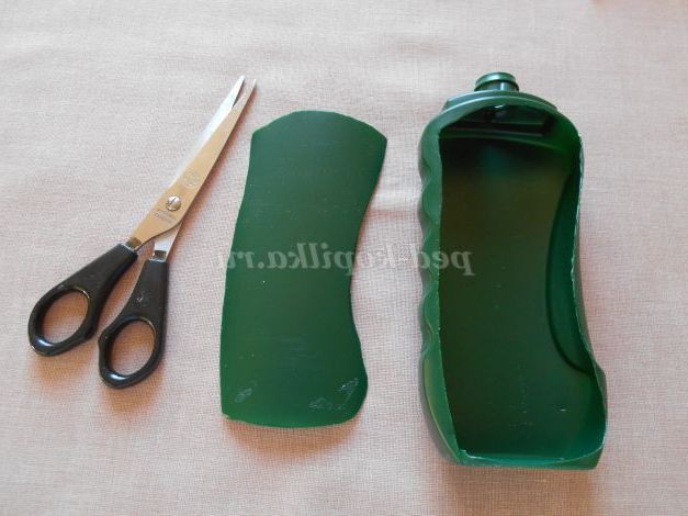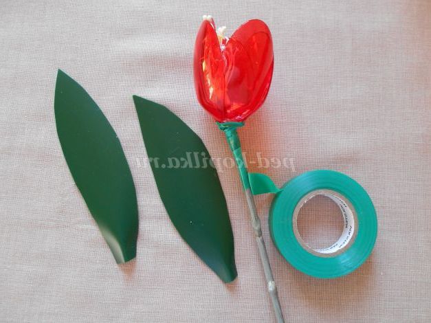Виріжте з пластикової зеленої пляшечки (на ваш розсуд) два листки. Варіантів багато.