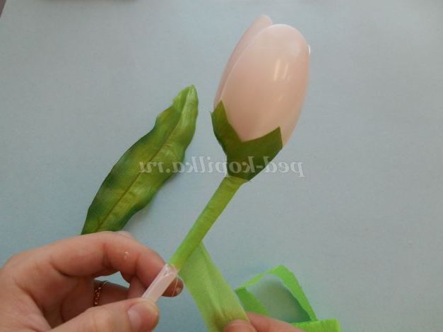 Використовуючи таку технологію, зробіть інші тюльпани. Якщо ви хочете, щоб у тюльпанів були довгі стебла, приклейте відрізані ручки. Наростіть стебло.