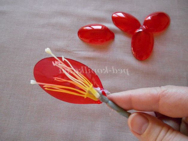 За допомогою гарячого клею до стебла тюльпана приклейте тичинки.