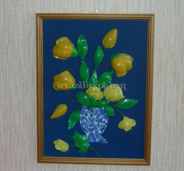 Для створення картини не потрібні фінансові витрати, необхідно лише фантазія і уява. Адже матеріал знаходиться просто під рукою. Нам знадобляться речі, які на перший погляд здаються абсолютно непридатними. Це пластикові пляшки, одноразовий посуд, кришки від пляшок і багато іншого. Загалом варто тільки почати! І ви відчуєте бажання творити чудеса.