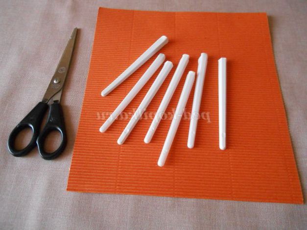 Викладаємо на картоні 7 ручок, формуючи з них «вазу-підставку».