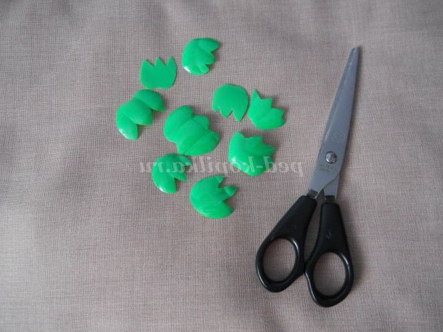 Із залишків зеленого пластику нарізаємо чашолистки.