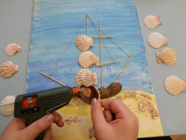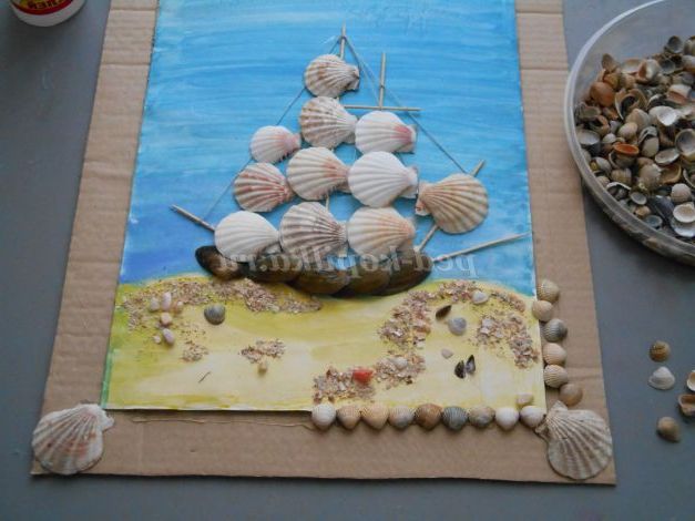 Панно "Вітрильник моєї мрії" з черепашок своїми руками. Майстер-клас з покроковими фото