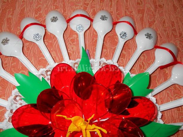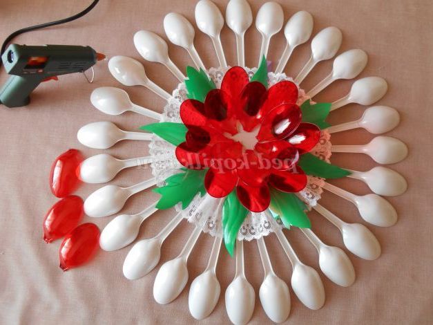 Майстер-клас. Панно з пластикових ложок «Аленький цветочек» своїми руками