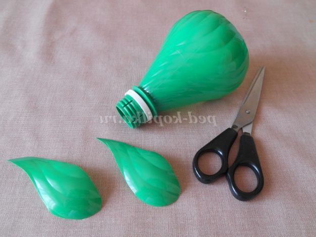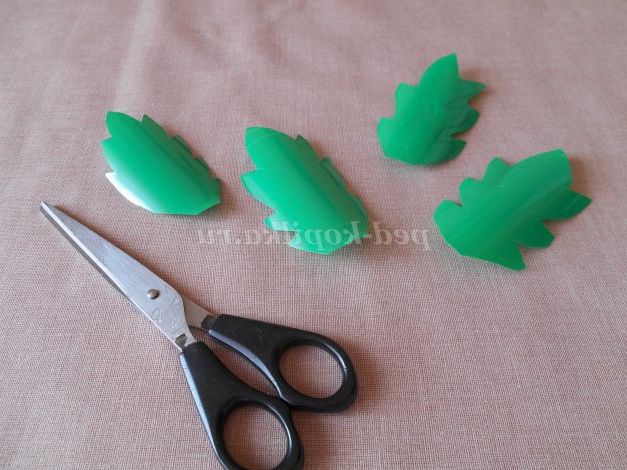 З верхньої частини пляшки по звивистих ліній виріжемо ще листочки, іншої форми.