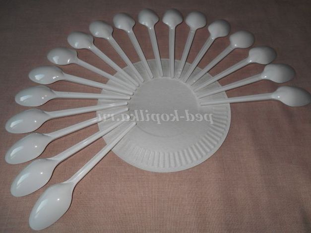 Нам знадобляться дві паперові тарілочки, 28 білих ложок і клейовий пістолет.