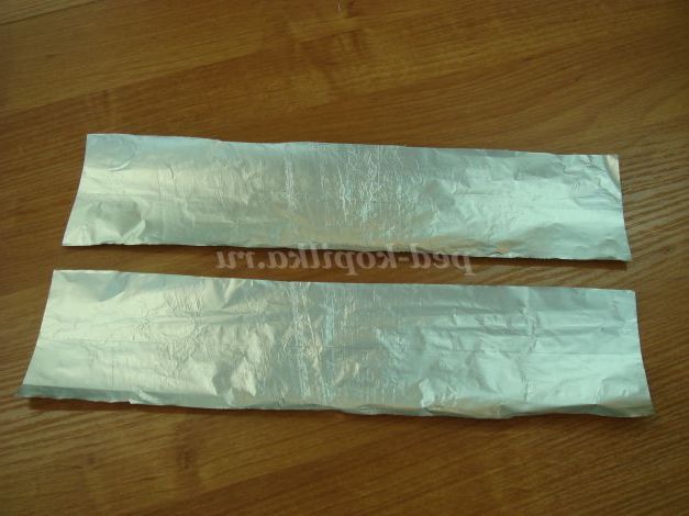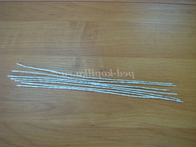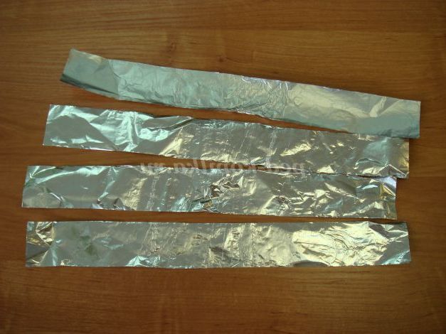 Для виготовлення основи (1) треба скрутити зволікання щільніше ніж обычные.Для цього фольгу розрізаємо шириною не 3см. а 6см. і скручуємо проволочки.Всего знадобиться 6 штук.