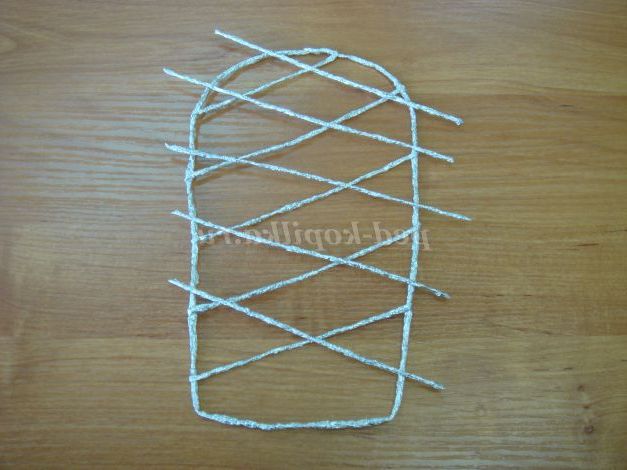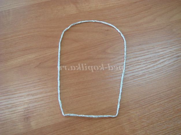 Скручуємо кінці і викладаємо основу: внизу 8 см. а верх трохи розширюємо і заокруглюємо. Для прикраси виготовляємо звичайні зволікання.