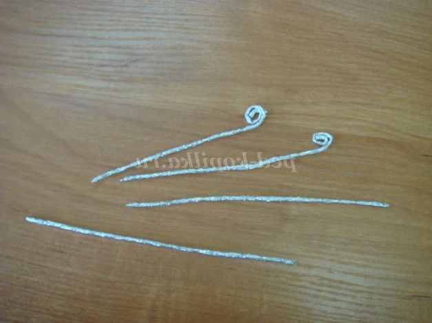 Спочатку виготовляємо тичинки: 2 зволікання розрізаємо навпіл і на одному кінці кожної частини закручуємо завиток.