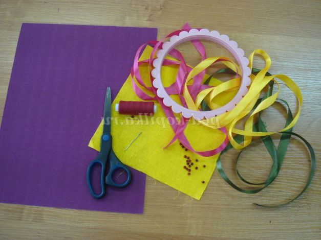 Відріжемо три відрізки по 20 див. малиновою стрічки для виконання кольорів.