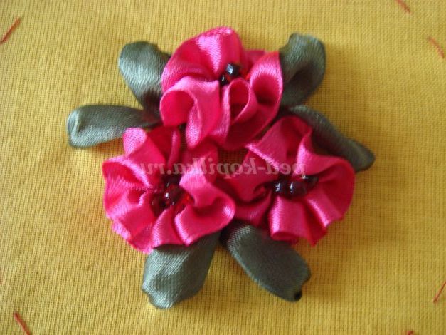 Стягаємо шов до утворення квітки, аналогічно виконуємо ще дві квітки.