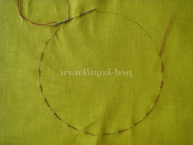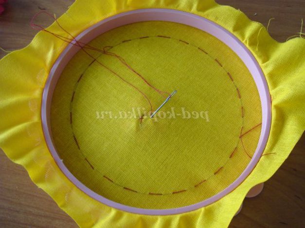 Швом «вперед голка» шиємо по контуру яскравою ниткою, щоб позначити місце для вишивки стрічками.