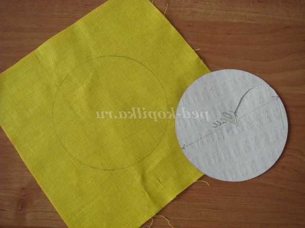 Прикладаємо вирізану середину від трафарету до середини тканини і обводимо олівцем.