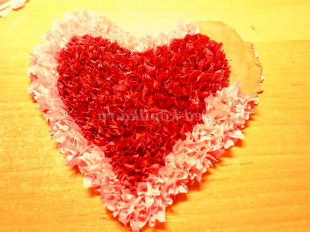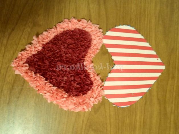 Для цього нам знадобиться: кольоровий картон (двосторонній), ножиці, кольорові серветки, клей, шаблони сердечок різної величини, пластилін, паєтки, самоклеющаяся папір, зубочистка або стрижень від ручки (це буде наша торцовочка). Я використовувала зубочистку з притупленим кінцем, інакше вона рве серветку.