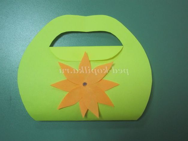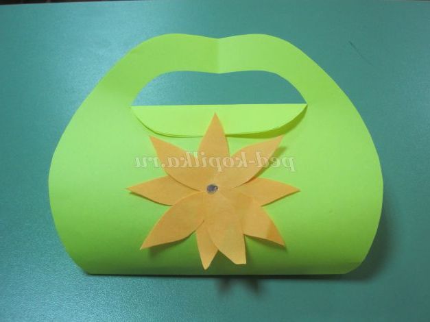 12. Наклеюємо в середину сумочки 4 пелюстки, краї не приклеюємо.