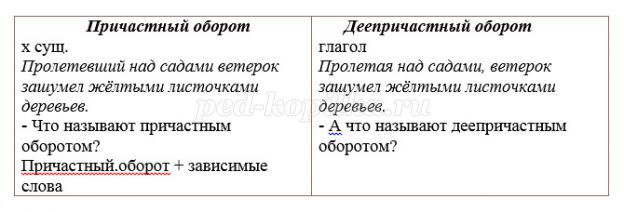 українська мова 7 клас, причетний оборот, конспект уроку російської мови 7 клас, залежне слово, деепричастный оборот