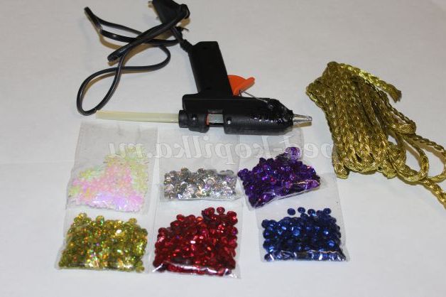 7. За допомогою клейового пістолета приклеюємо паєтки по малюнку.