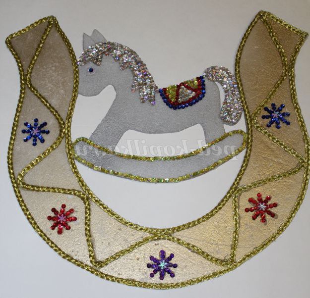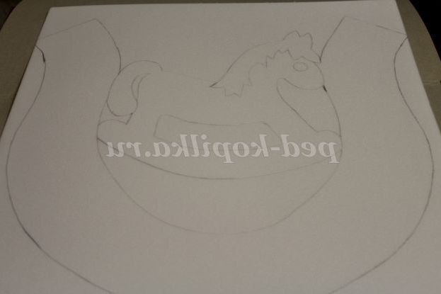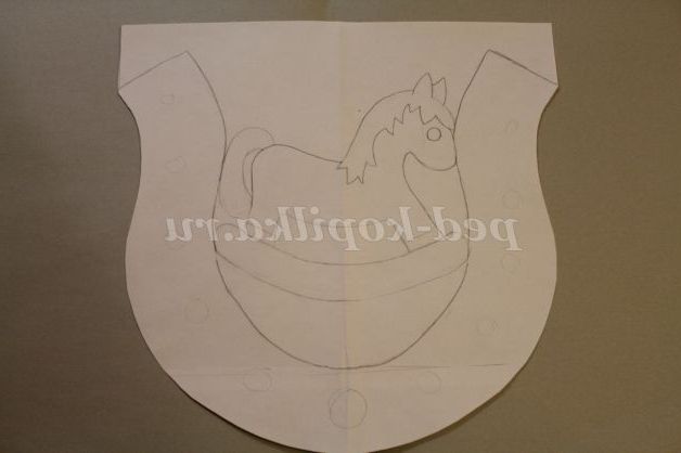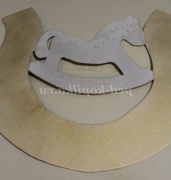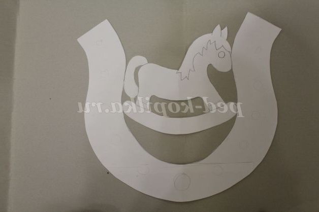 5. Розділити деталі паперової заготовки на конячку і підкову. По черзі накладаючи шаблони коні і підкови на частини заготовки, зафарбовуємо їх у відповідні кольори.