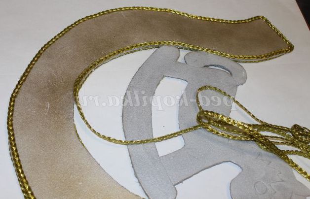 6. За допомогою клейового пістолета наклеїти золоту тасьму по контуру фігури.