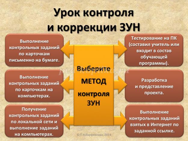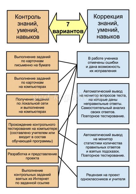 Таким чином, виходить 7 варіантів уроків перевірки і корекції знань, умінь і навичок.