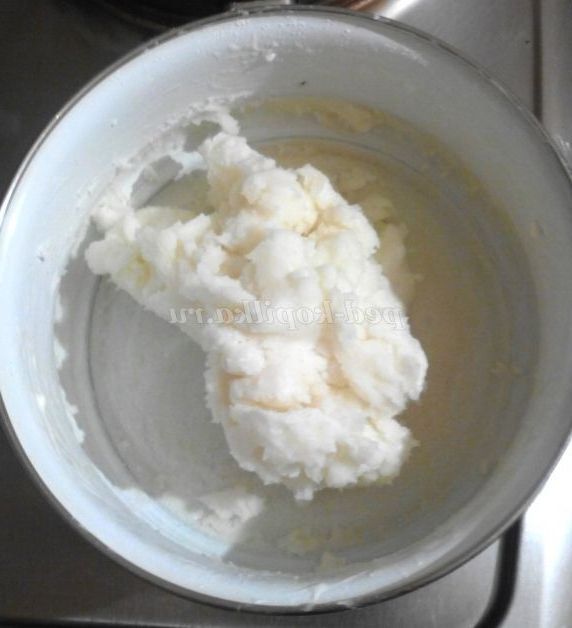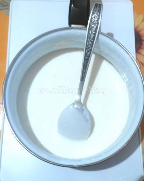 В емальований ківш викладаємо всі інгредієнти, використовувані для приготування холодного фарфору