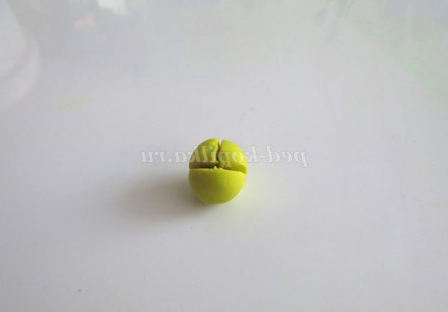 2. Розріжте велику кульку манікюрними ножицями на дві частини не до кінця, як показано на фото