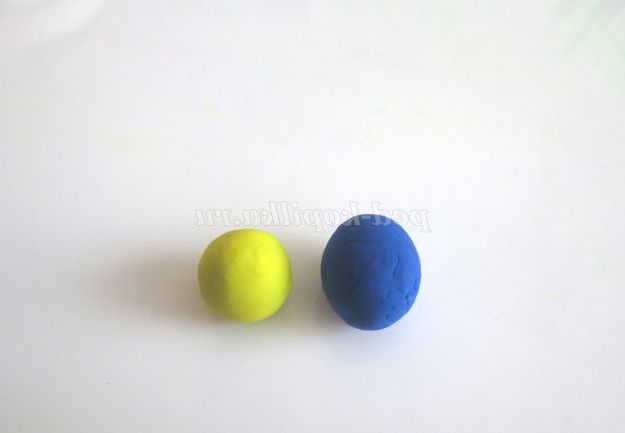 1.Приготовьте з холодного фарфору дві кульки-один діаметром близько 1,5 -2 див., інший - трохи менше