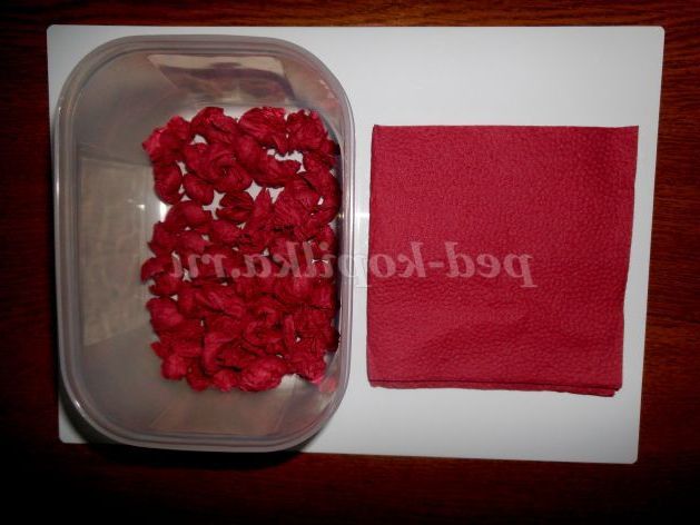 2.Ребенок попередньо катає кульки з серветок червоного кольору, кількість залежить від розміру самої пташки