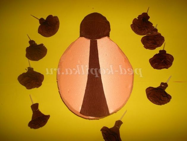 9. беремо наш образ божої корівки, і готуємо спочатку коричневі квіточки