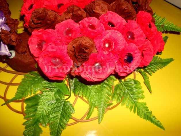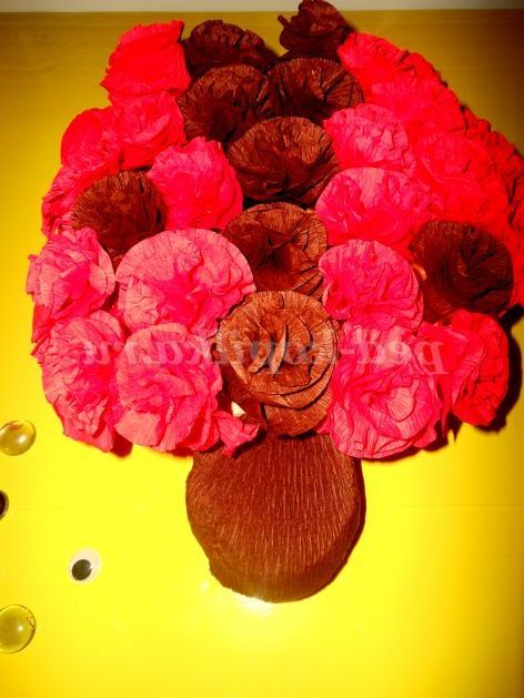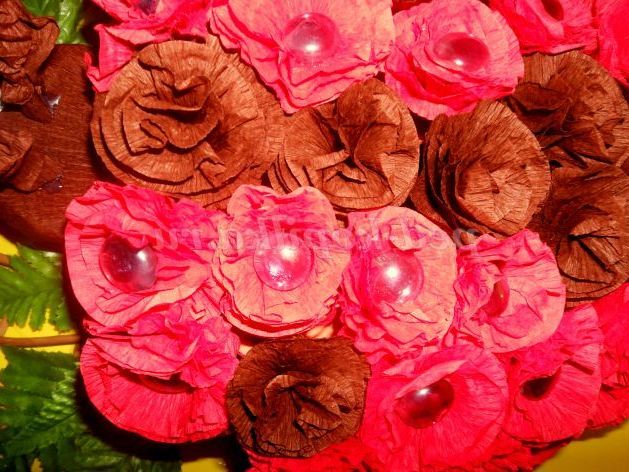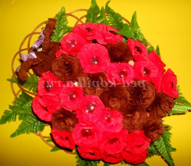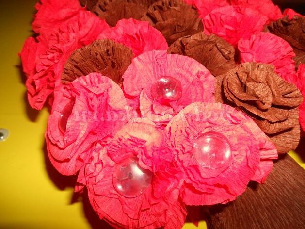 12. тепер беремо червоні квіти і починаємо близько один до одного приклеювати крок за кроком