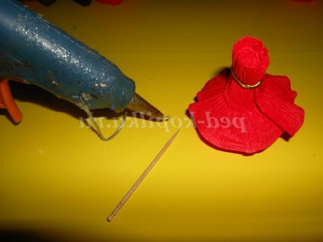 7. за допомогою терма клею у кожну квітку кріпимо зубочистку