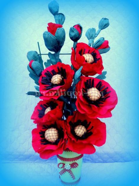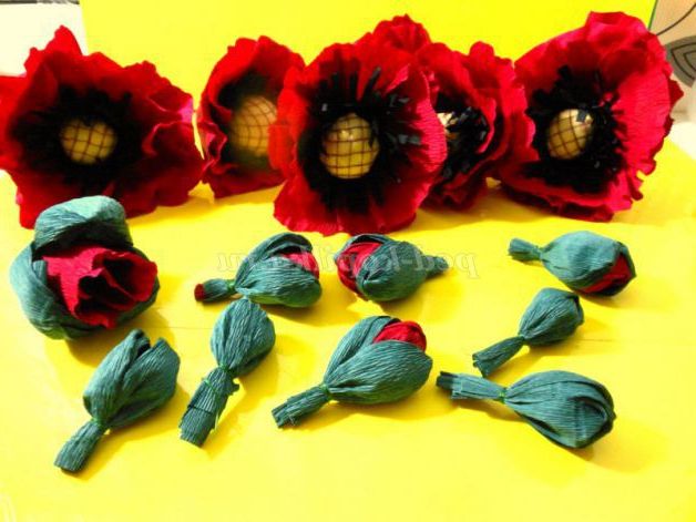 Маки з крепованого паперу. Майстер-клас з покроковим фото