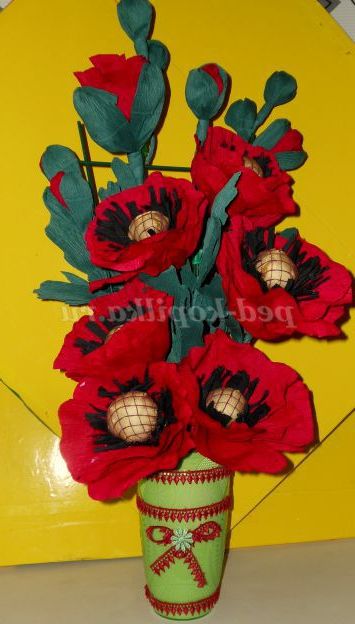 Мета: виготовлення композиції з маків з використанням креповой папери.