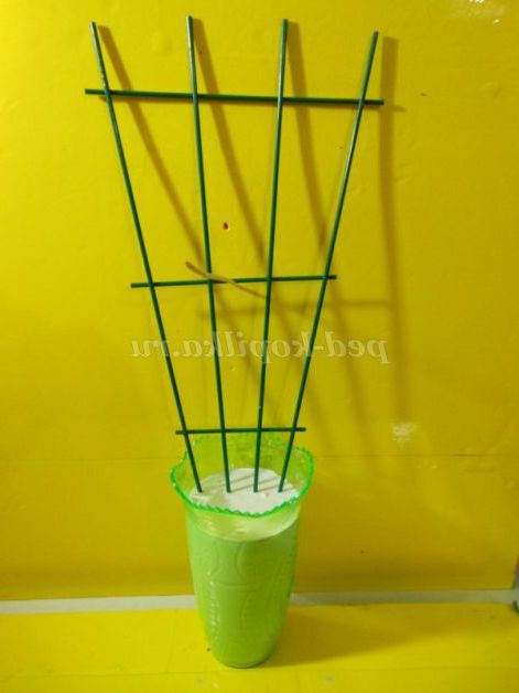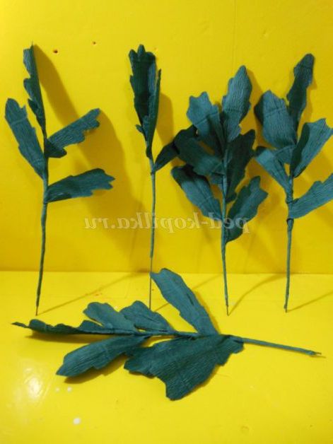 І в доповнення з трьох сторін примотуємо зелені листочки, так само кріпимо дротом.