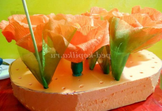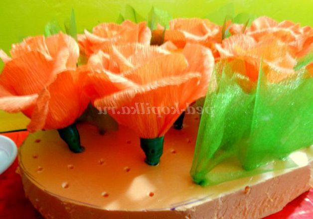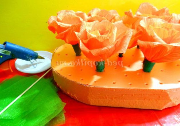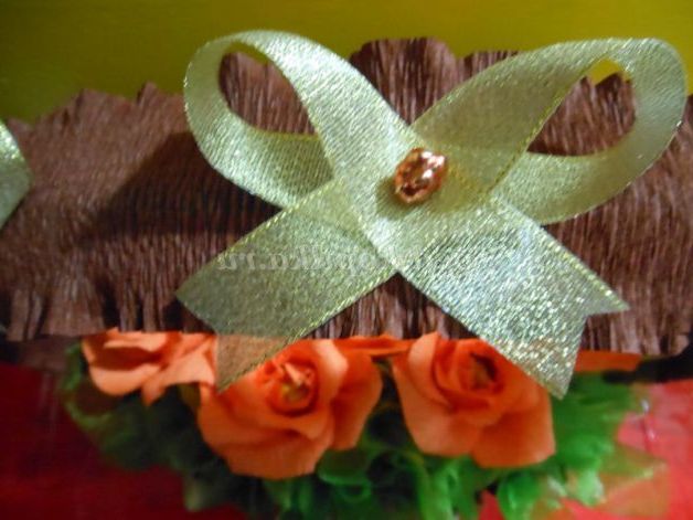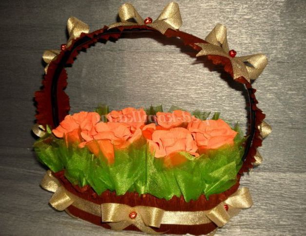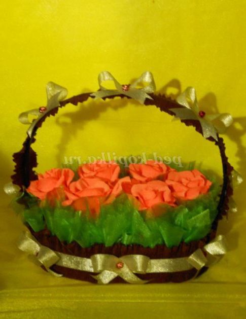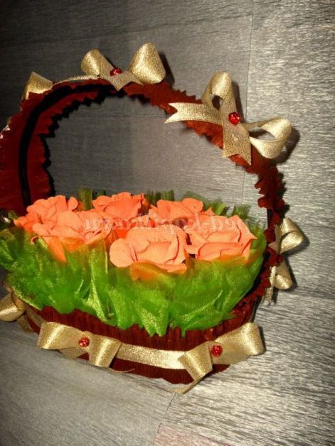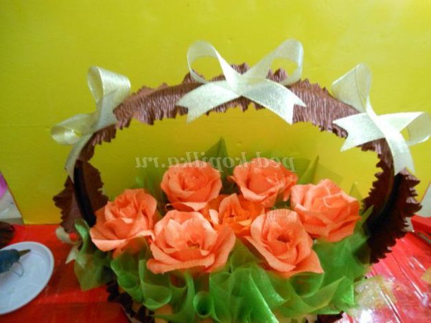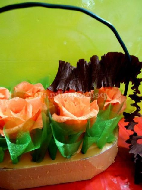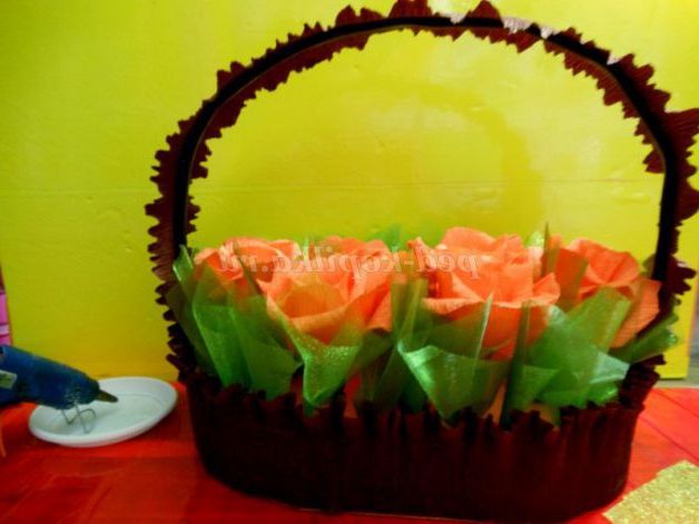Майстер клас з покроковими фото: «Корзинка з сюрпризом» Виготовлення трояндочок з креповой папери