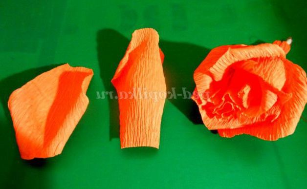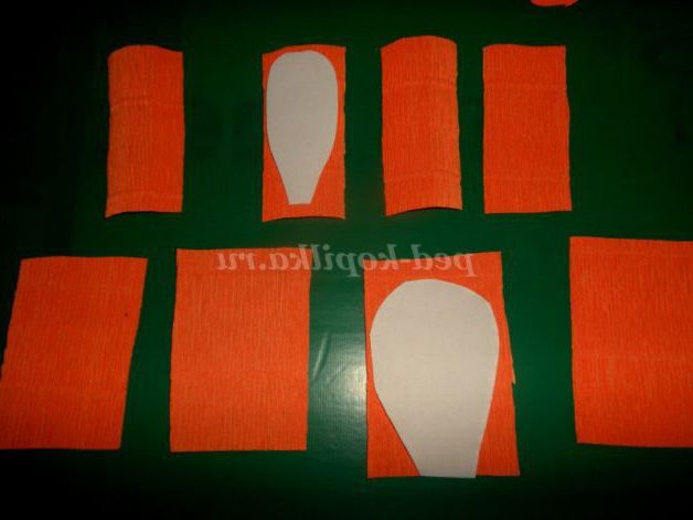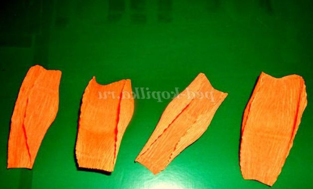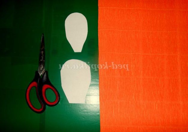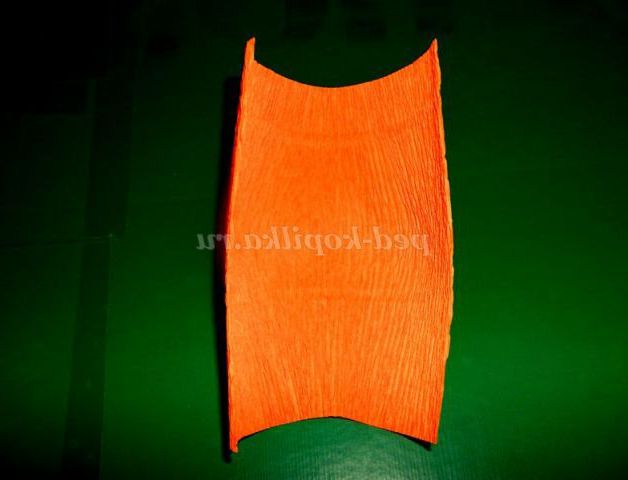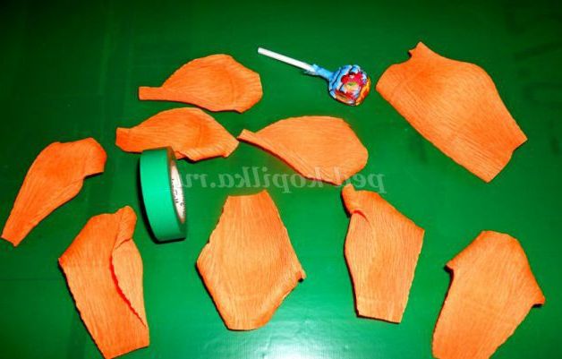 Далі з креповой папери оранжевого кольору вирізаємо заготовки для майбутніх троянд. У вас повинно вийти для однієї троянди: