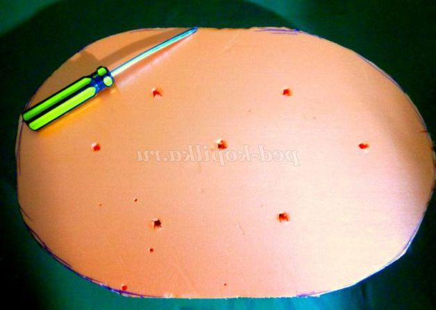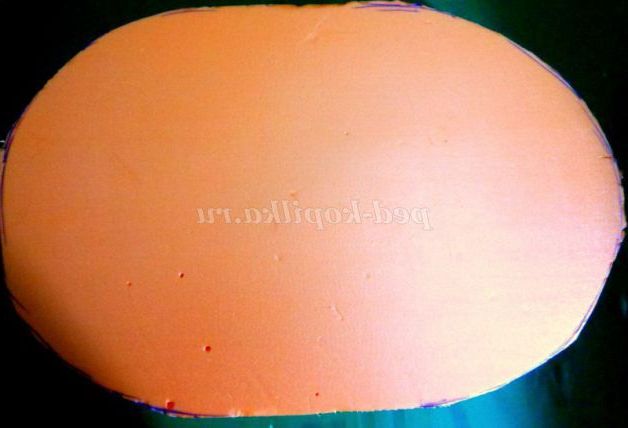 Робимо нашу кошик, для цього нам знадобиться шматок пеноплена шириною 7 см довжиною 35 см і канцелярський ніж, можна намалювати овал, а потім вирізати