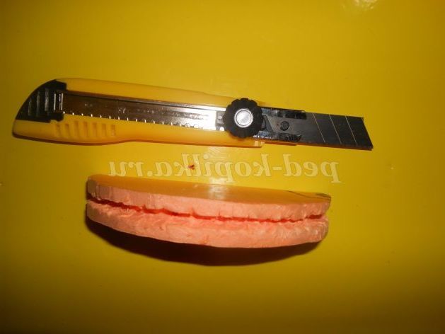Акуратно робимо борозенку в одній половинці канцелярським ножем, в цю борозенку ми і будемо вставляти наші вилочки
