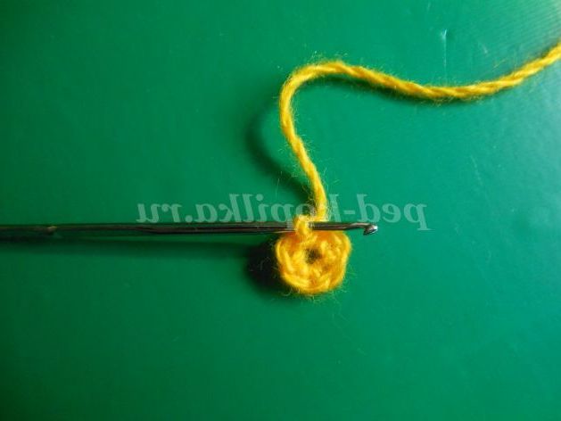1крок. Для першого ряду я завжди набираю 2-3 ВП і в 1-ю петлю ввязываю стільки полустолбиков або ССН, скільки мені треба. Конкретно в цій деталі