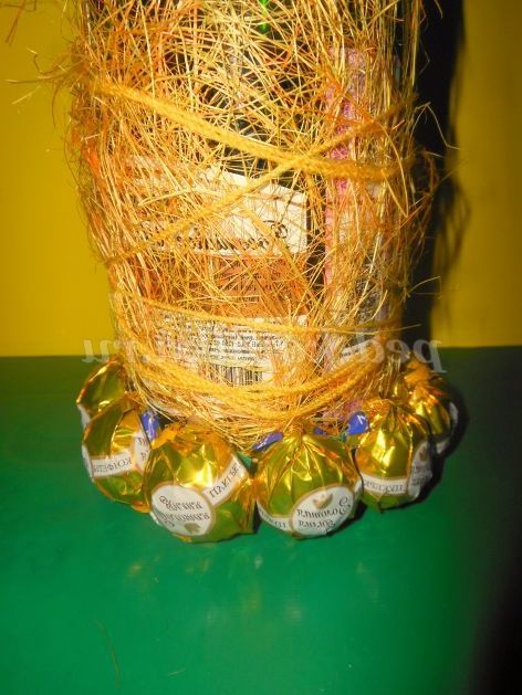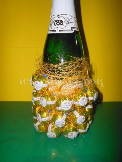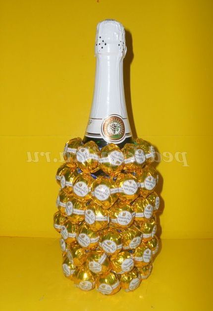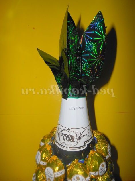 Упаковка для шампанського з цукерок у вигляді ананаса. Покрокові фото і опис