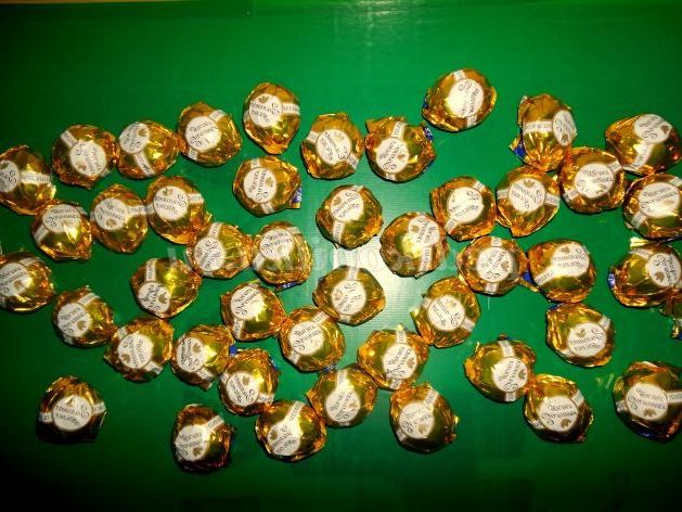 6. Далі декор самої пляшки, і так нам потрібні цукерки і клейовий пістолет