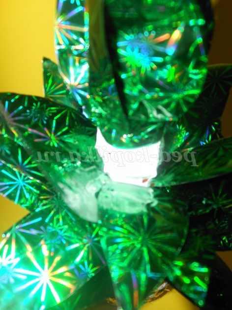 9. Тепер кріпимо листя, мій спосіб дуже легкий, беремо ізоляційну стрічку, відрізаємо в довжину по діаметру пляшки і приклеюємо на стрічку листочки