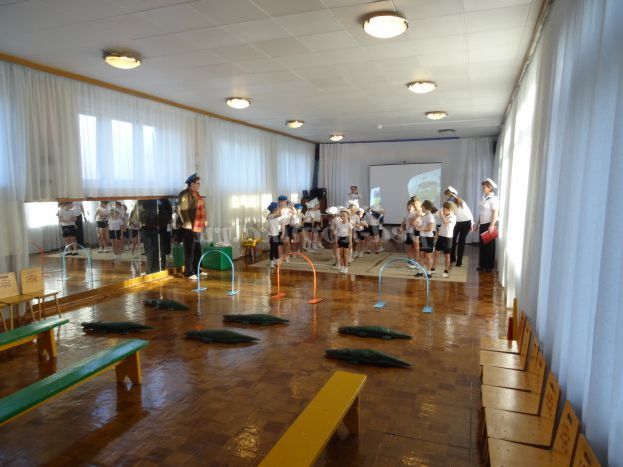 Під військовий марш діти проходять на свої місця.