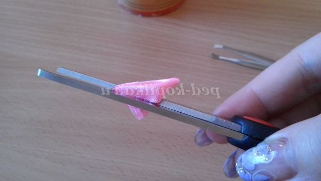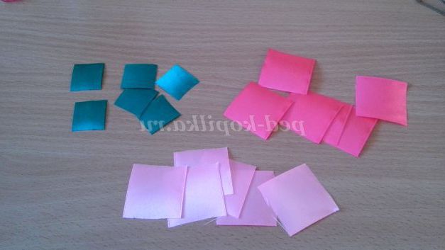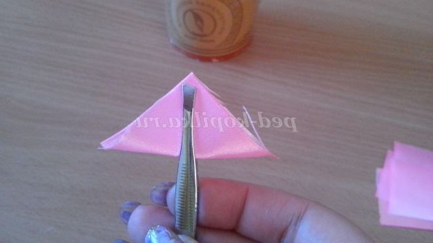 5)Беремо квадрат зі світло-рожевої стрічки.