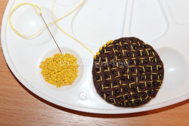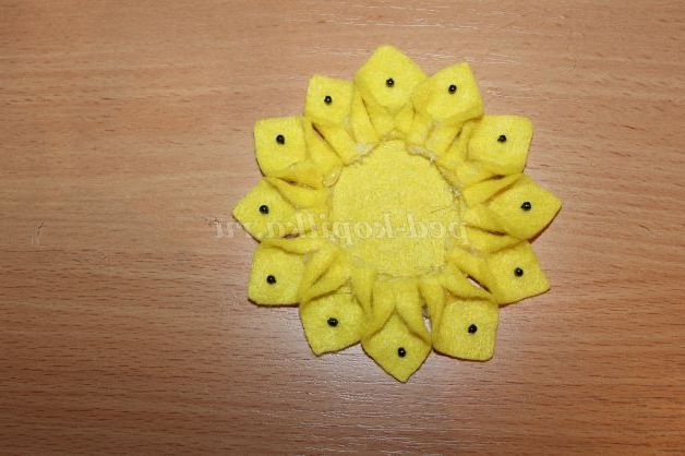 11)У кожен пелюстка пришиваємо по одній чорній бисиринке.