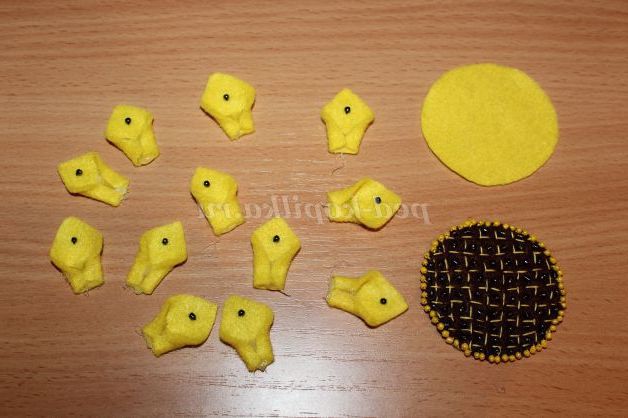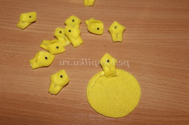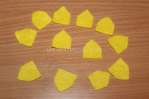 9)За шаблоном вирізаємо 12 деталей з жовтого фетру.